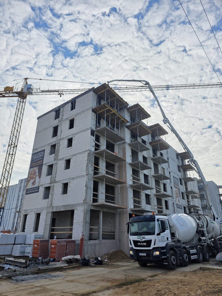Betonowanie ostatniego stropu nad V piętrem